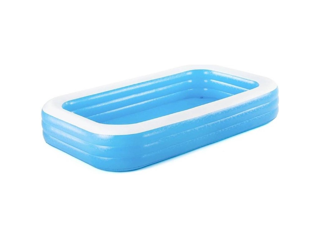Nač se v horkém létě mačkat na koupališti? Nafukovací bazény vám zaručí příjemné osvěžení v pohodlí vašeho domova. Letní vedra pro vás přestanou být problém! Nafukovačka je vhodná jako brouzdaliště pro děti. Nafukovací bazén Family je tříkomorový, jeho rozměr je 305 x 183 x 56 cm, vhodný pro děti nad 6 let s kapacitou vody (75%) 1302 l. Vhodný na zahrady rodinných domů.