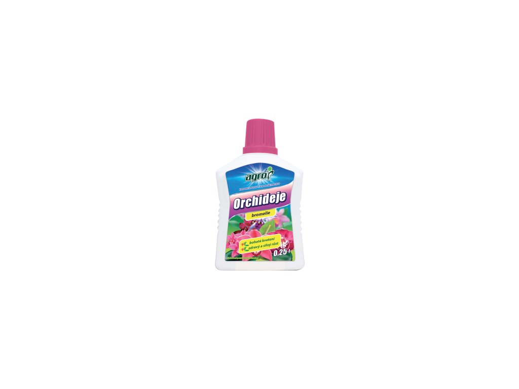 Agro ORCHIDEA je jedinečné kapalné hnojivo pro orchideje. Je vynikajícím přípravkem k příhnojování orchidejí Anthurium, bromélií a ostatních epifytických rostlin, což jsou rostliny, které se v přírodě přichytávají ke kmenu a větvím pevnými krátkými silnými kořeny. Díky vyváženému poměru základních živin podporuje zdravý vývoj rostlin, jejich bohaté kvetení a zároveň přispívá k hojnému nasazení poupat.Toto vynikající kapalné hnojivo obsahuje správné množství stopových prvků zlepšujících tvorbu kořenů a listů.