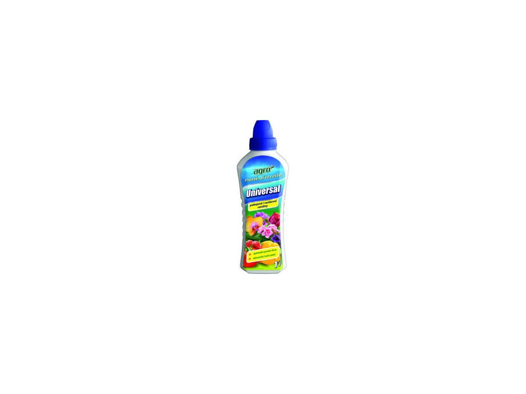 Agro UNIVERSAL je kvalitní univerzální kapalné hnojivo vhodné pro veškeré pokojové, balkónové, terasové květiny i ostatní zahradní rostliny. Toto minerální hnojivo je bohaté na organické a minerální látky a stopové prvky. Díky svému složení dodáva rostlinám kvalitní výživu pro správný zdravý růst, bohaté kvetení rostlin a tvorbu listů.