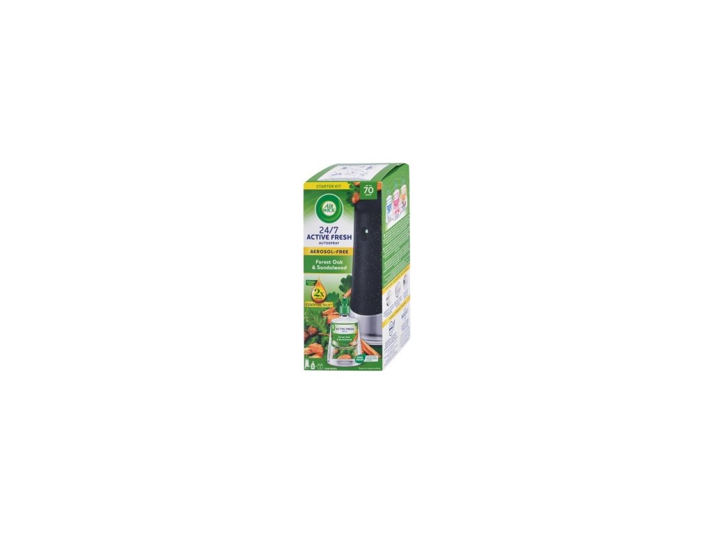 Air Wick Active Fresh 24/7 je automatický osvěžovač vzduchu, který využívá složení na vodní bázi a přináší do vašeho domova příjemnou vůni dubového lesa a santalového dřeva. Tento produkt je navržen tak, aby účinně neutralizoval nepříjemné pachy a poskytoval dlouhotrvající svěžest.