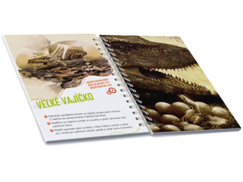 Ilustrace od Jana Sováka vás zavedou do období druhohor. Vykutejte a sestavte si také kostru T-rexe a vyluštěte a vymalujte listy s aktivitami, které se váží rovnou k příběhům. Hračka na baterie, se světlem.