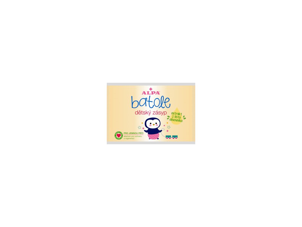 Alpa Batole je dětský zásyp s extraktem z listu olivovníku je vhodný k ošetření a zklidnění pokožky. Maminky dlouhodobě spoléhají na časem a tradicí ověřené produkty řad Aviril a Batole. Protože dětská pokožka je až o polovinu tenčí než u dospělých a je citlivá na nepříznivé vnější vlivy, zaslouží si tu nejlepší péči.
