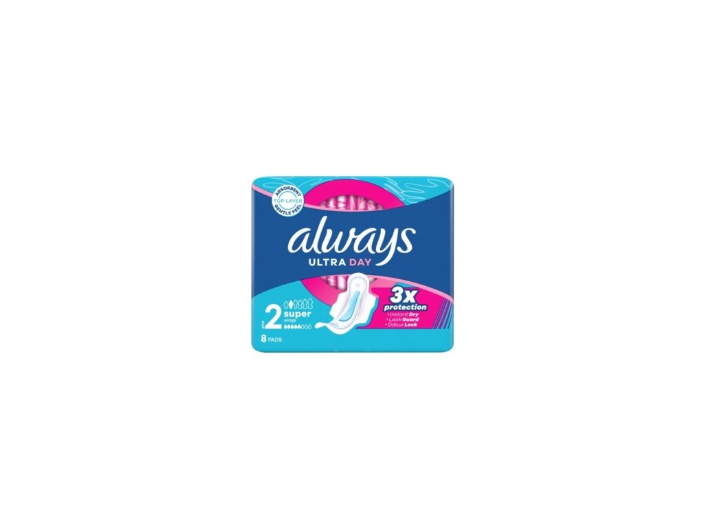 Always Ultra Day Super jsou extra savé dámské hygienické vložky s křidélky,