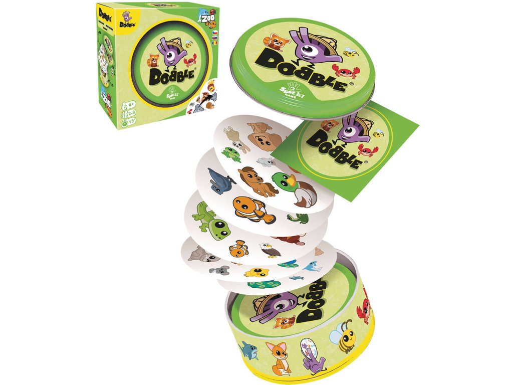 Postřehový bestseller se vrací s postavičkami a symboly zvířátek ze ZOO! Na každé kartě jich najdete 8 různých. Máte rádi zvířátka všech barev? Zahrajte si s nimi oblíbenou postřehovou hru Dobble! Hra je zaměřená na rychlost, postřeh a reflexy! Popis všech symbolů použitých ve hře najdete v pravidlech.