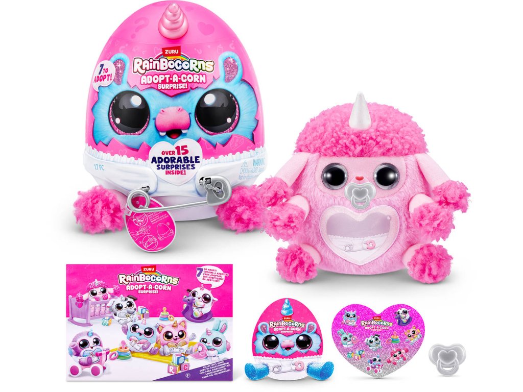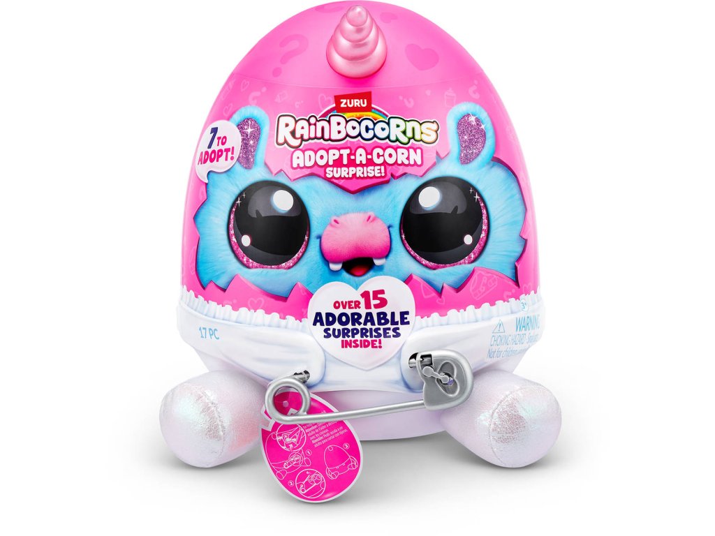 Objevte roztomilé miminko Rainbocorna ukryté v tajemném vajíčku! Adopt-A-Corn přináší okouzlující překvapení plné lásky a péče. Každé vajíčko skrývá více než 15 roztomilých doplňků a překvapení, včetně roztomilé plenky, dudlíku a speciálního srdíčka na hrudi, pod kterým čeká další tajemství.