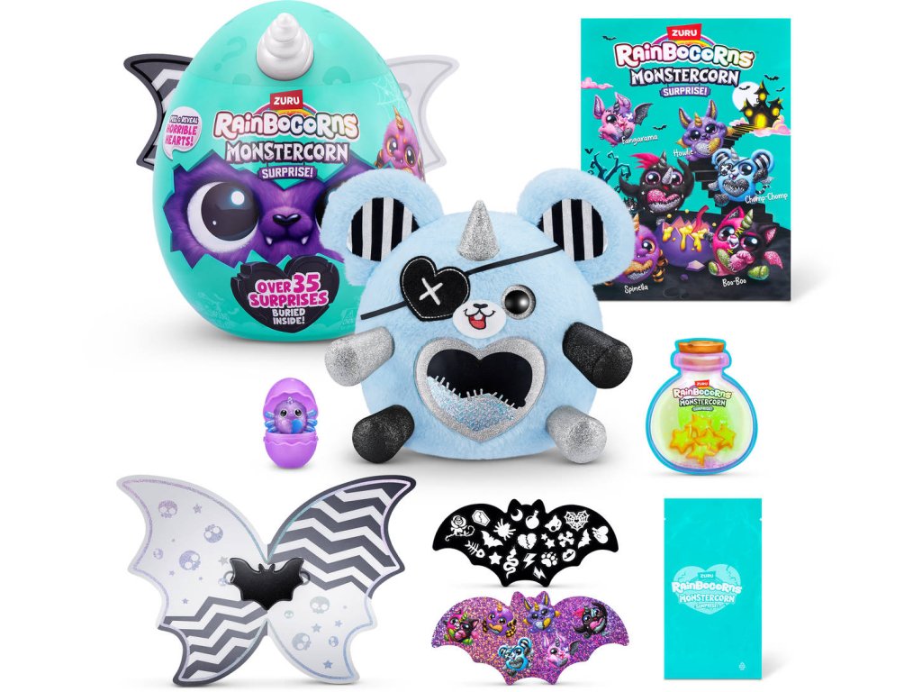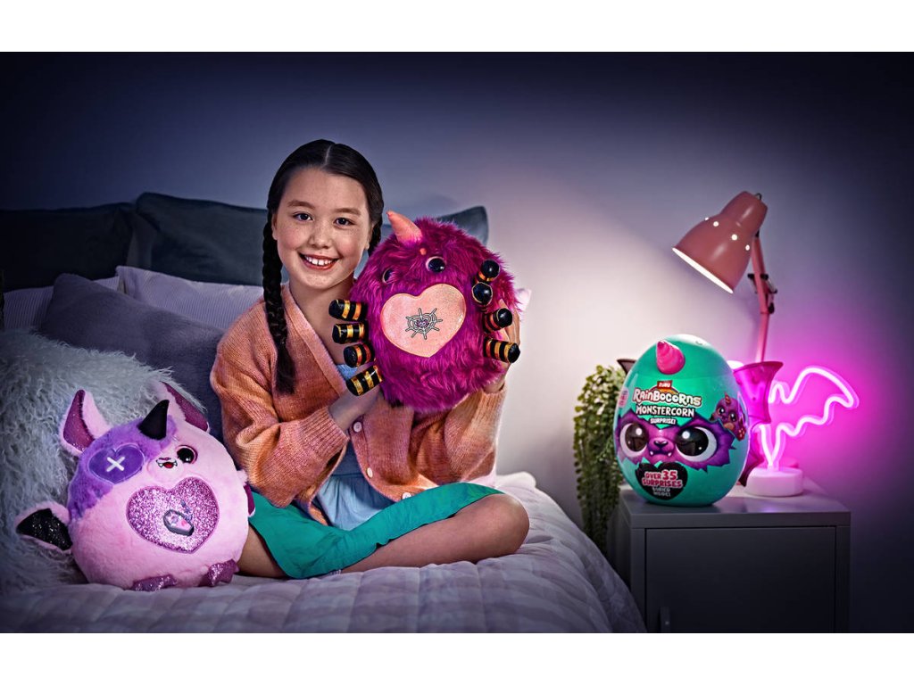 Tito děsivě roztomilí příšerky ukrývají více než 35 překvapení, která čekají jen na to, až je objevíte. Každý z šesti Monstercornů má svůj vlastní jedinečný šarm a vzhled, ale nebojte, jsou příliš roztomilí na to, aby vás vyděsili. Přeměňte sebe i svého Monstercorna na noční bytosti pomocí netopýřích křídel, která jsou součástí balení. Objevte kouzelnou směs, vytvořte vlastní tajemné elixíry a užijte si spoustu zábavy. Nezapomeňte rozbít hrůzostrašné vajíčko Boo-boocorna a zjistěte, který strašidelný kamarád se skrývá uvnitř vajíčka! Monstercorn i jeho strašidelná příslušenství navíc svítí ve tmě, takže se zábava nikdy nezastaví. Každý Monstercorn má na sobě srdíčko, které můžete přetřít rukou a odhalit, co miluje. Nasbírejte všech šest strašidelných plyšových Monstercornů a prozkoumejte svět plný záhad, překvapení a kouzel!