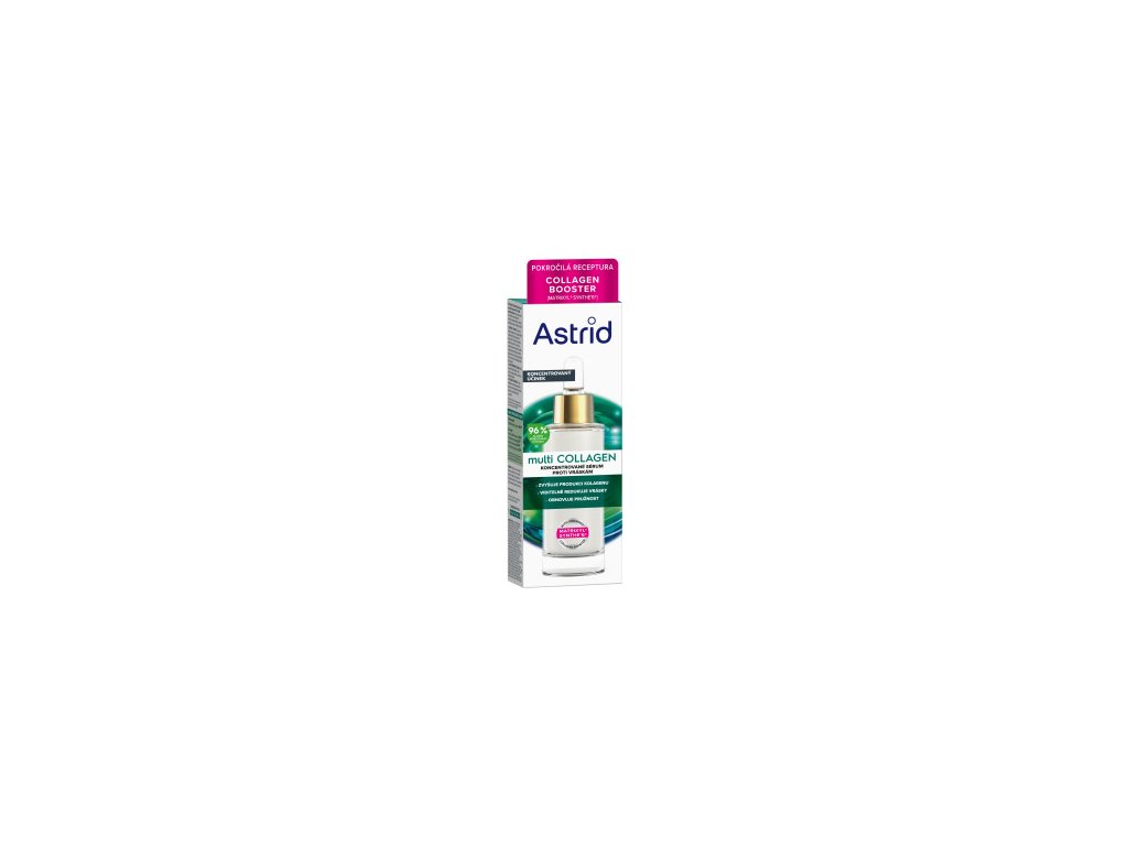 Pleťové sérum Astrid Multicollagen je koncentrovaný přípravek v lahvičce o objemu 30?ml, navržený pro boj s prvními známkami stárnutí pleti – jemnými linkami, vráskami i ztrátou elasticity.