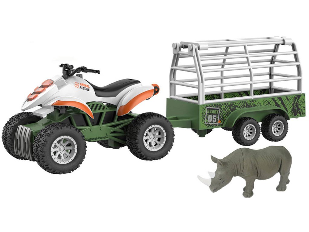 Obsah balení: čtyřkolka, přívěs, zvířátko