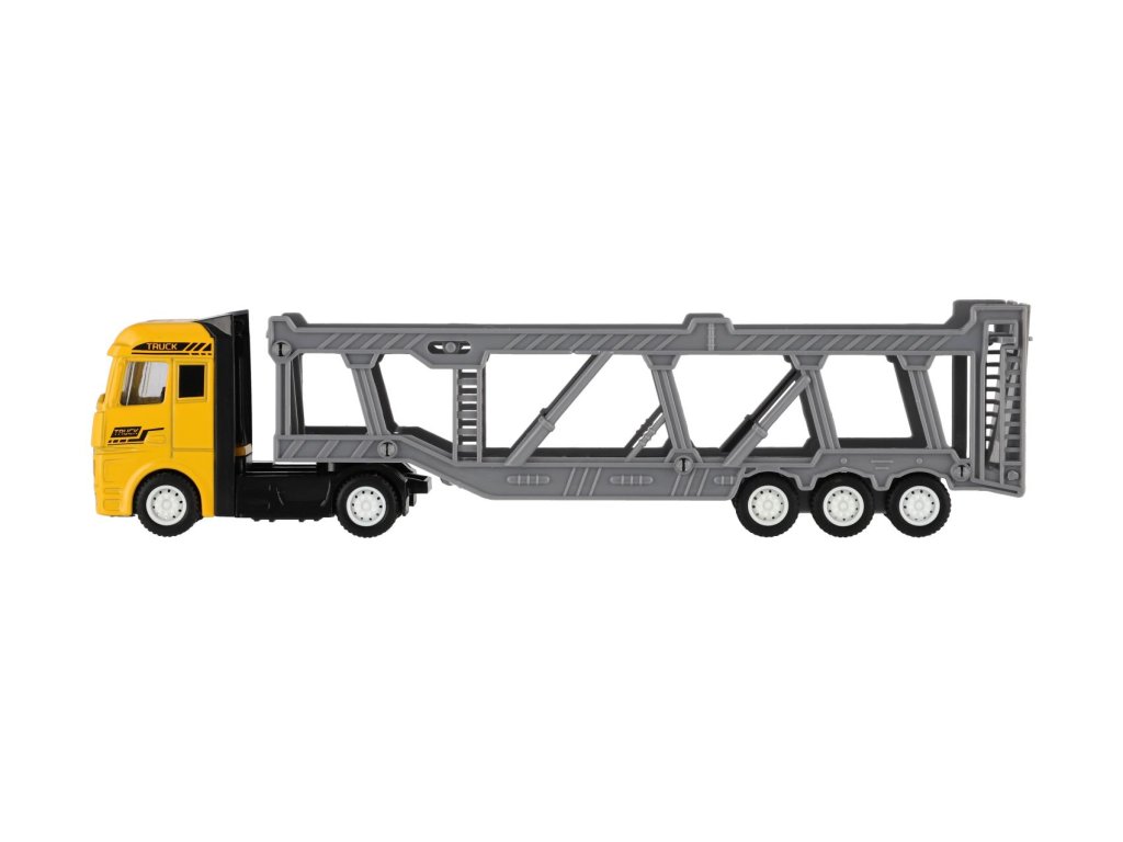 Kamion s přepravníkem aut je skvělý dárek pro malé řidiče. Auto je vyrobeno z kvalitního plastu je 22 cm dlouhé.