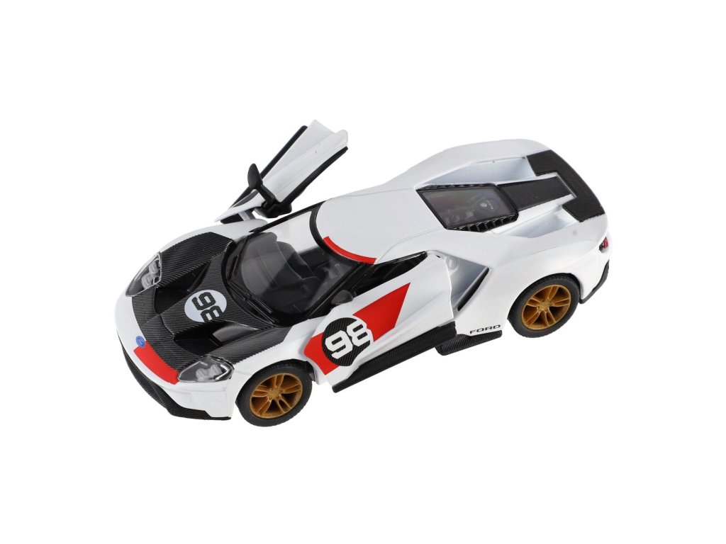 Krásný kovový model auta Ford GT 1:38. Autíčko má otevírací dveře a je na zpětné natažení. Dostupné ve třech barevných variantách.