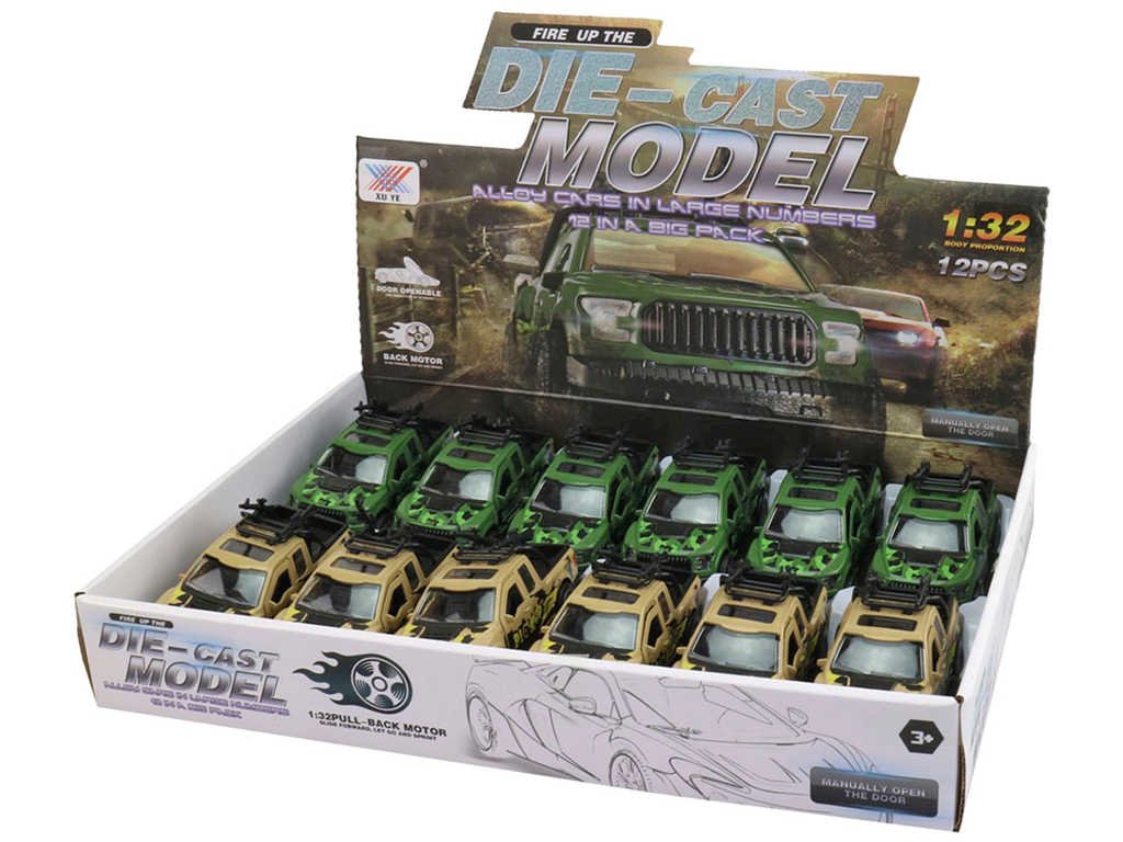 Autíčko army pickup, model z kovu a plastu, se dvěma zbraněmi na střešním prostoru, s pohonem na zpětné natažení, ve dvou barevných variantách, pro všechny malé bojovníky. Baleno volně.