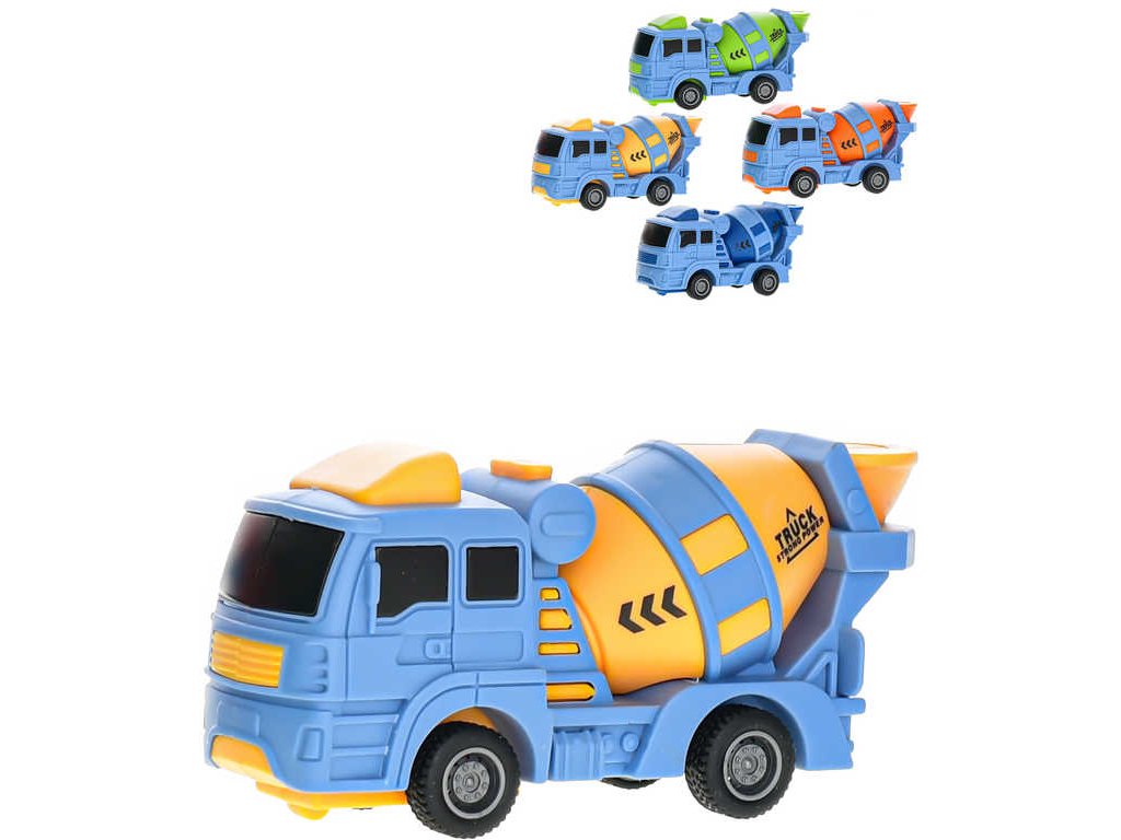 Malý barevný domíchávač betonu, ve čtyřech barevných variantách, pro všechny malé stavitele. Po stlačení tlačítka na střeše autíčka, se míchačka rozjede směrem vpřed. Baleno volně.