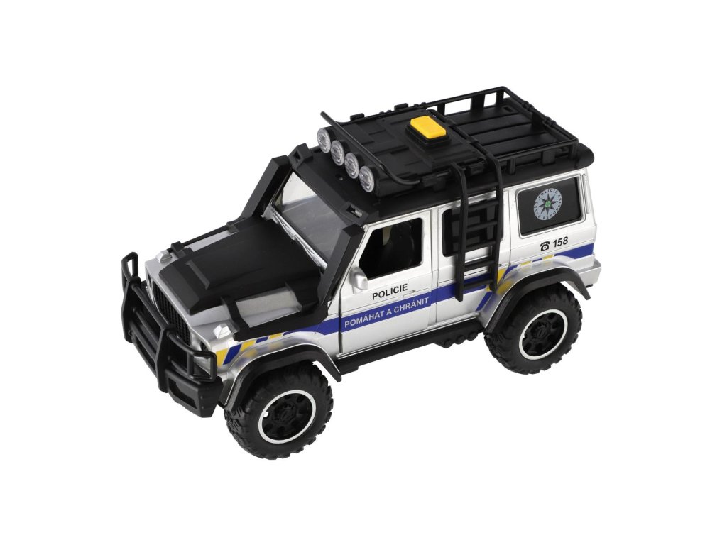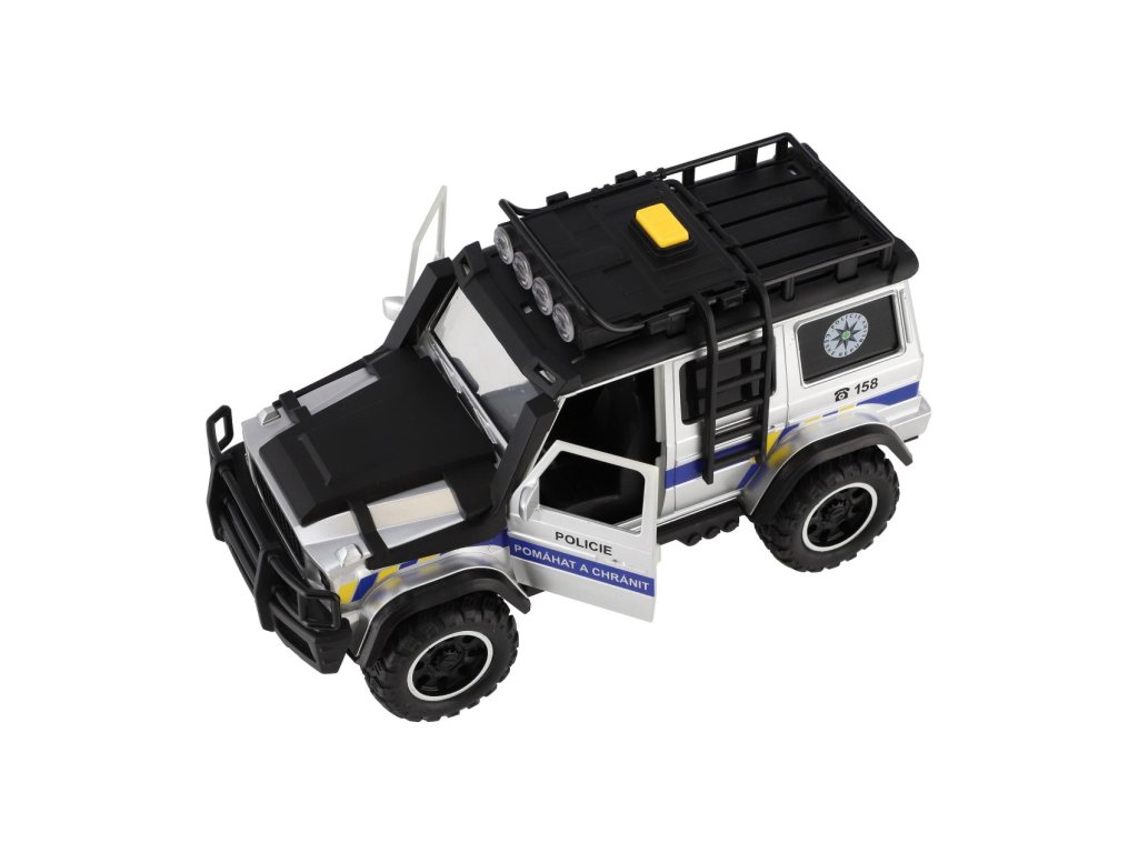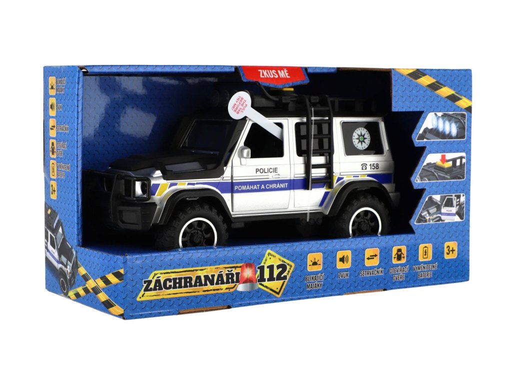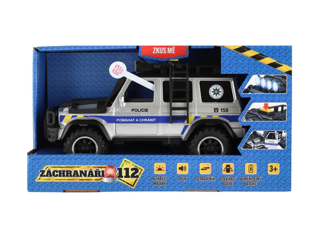Auto záchranáři policie terénní plast 23x14cm na setrvačník na baterie se světlem se zvukem v krabic