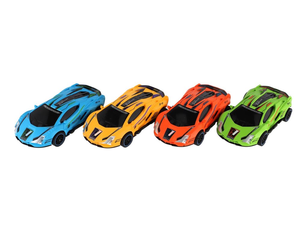 Auto závodní driftovací plast 16cm na setrvačník 4 barvy 8ks v boxu