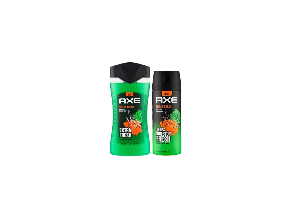 Axe balíček je zde pro každého muže, který umí ocenit eleganci a prahne za skvělou vůní. Sofistikovaná vůně využívá to nejlepší z přírody a kombinuje neodolatelnou vůni palmových listů a ambry. AXE Jungle Fresh tě provede jakýmkoli každodenním dobrodružstvím! Dárkový balíček pro muže Axe Jungle Fresh přináší mix deodorantu a sprchového gelu, který zaručí svěžest, dlouhodobou vůni a příliv sebevědomí.
