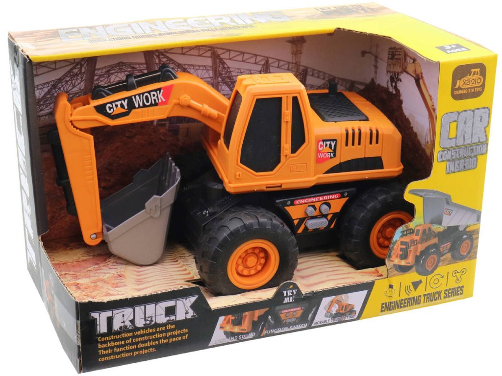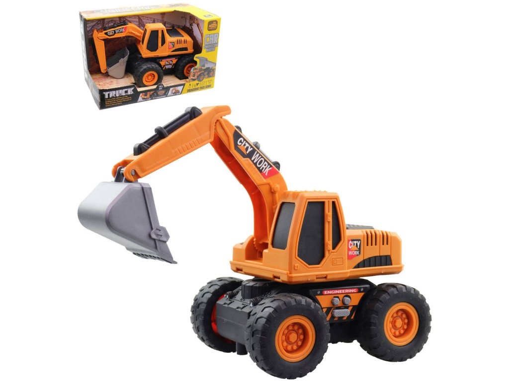 Bagr pracovní stavební stroj funkční na baterie Světlo Zvuk
