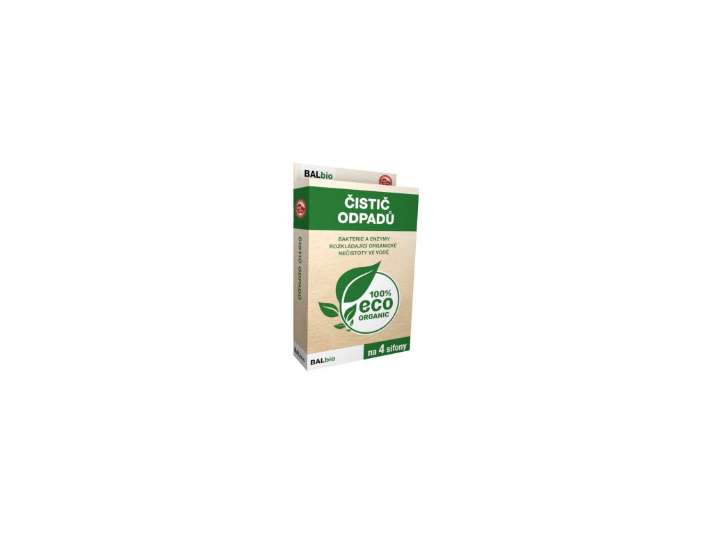 BALbio ekologický čistič odpadů je přípravek pro čištění odpadnícho potrubí, kdy jedno balení je určeno k ošetření 4 odpadních větví. Oproti chemickým přípravkům působí preventivně a to díky užitečným bakteriím, které se usazují na organických nánosech v odpadním potrubí. Při použití chemických přípravků dochází pouze k částečnému uvolnění nánosů v potrubí a to v moment chemické reakce hydroxidu sodného s vodou. Dojde tedy k prostoupení ucpaným místem a tím veškerá účinnost končí.