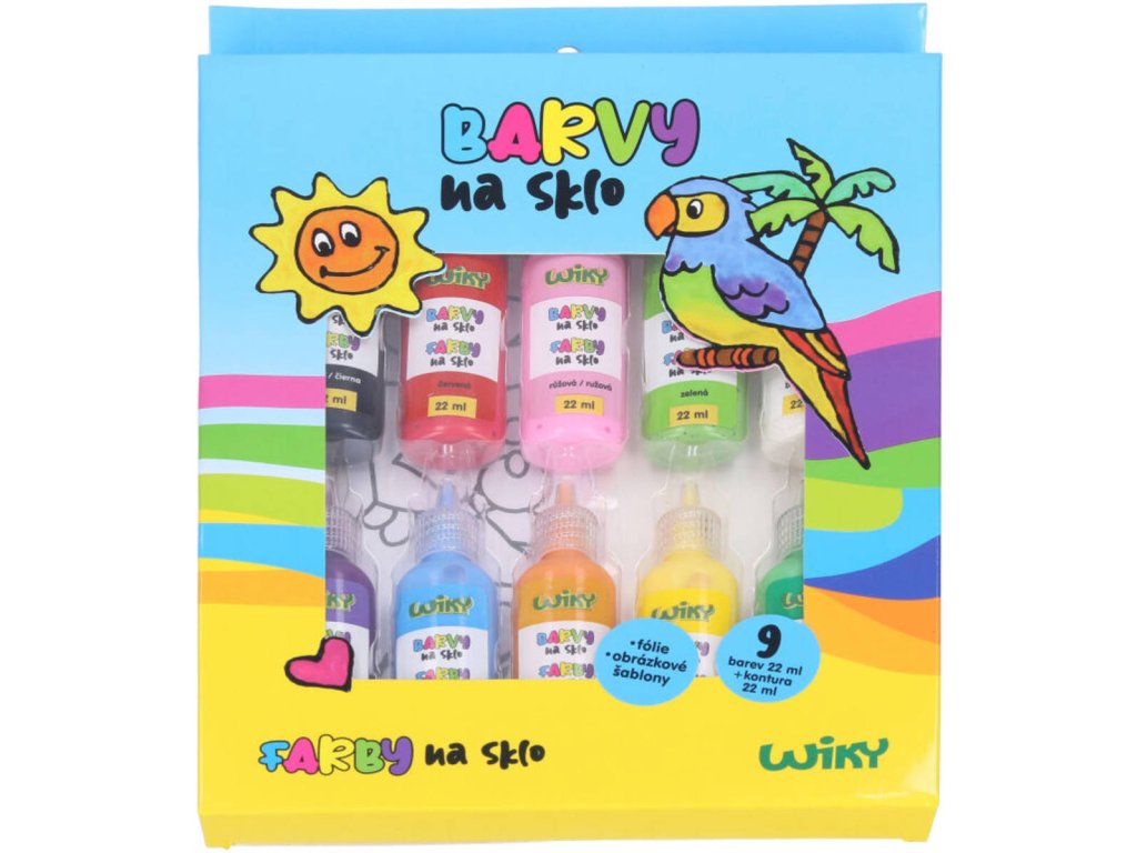 Kreativní sada pro děti v podobě barviček na sklo. Stačí nanést barvy na předlohy a poté přelepit na sklo. Nebo můžete rovnou vytvářet vlastní výtvory malováním přímo na okno. Balení obsahuje 9 barviček a černou konturu s foliemi a šablonami.