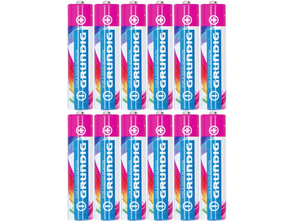Alkalické baterie GRUNDIG Alkaline pro vyšší zatížení s dlouhou životností. Vynikající poměr cena / výkon. Baleno po 12ti kusech.