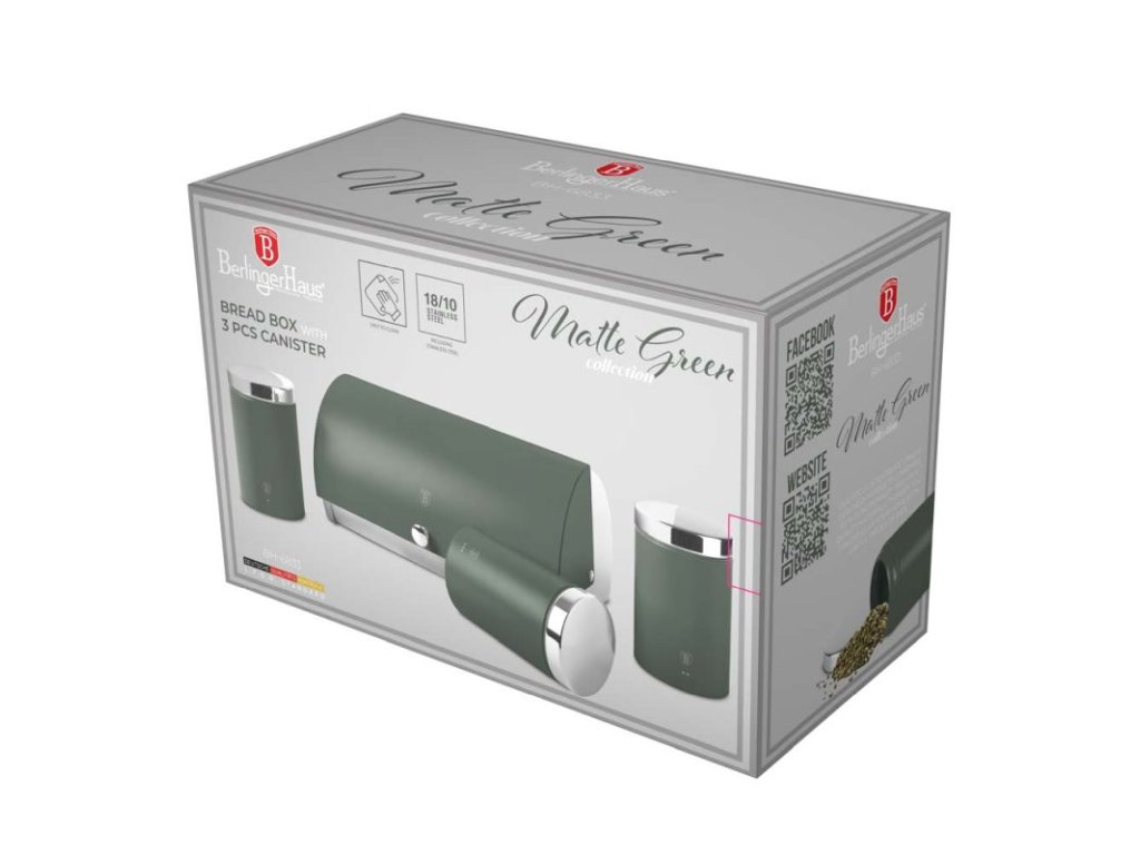 BERLINGERHAUS Chlebník a sada dóz na potraviny 4 ks Matte Green Collection BH-6833