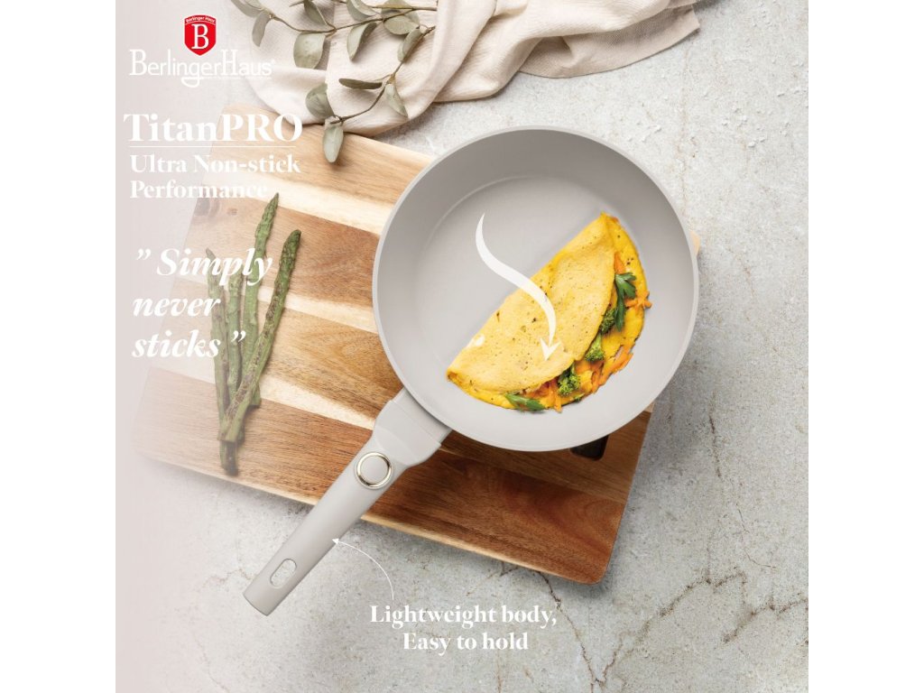 Obohaťte svou kuchyni o prémiovou sadu pánví s titanovým povrchem Sahara Collection, která obsahuje tři pánve o průměrech 20, 24 a 28 cm. Titanový nepřilnavý povrch na nádobí patří mezi špičku v moderním kuchyňském vybavení. Díky své odolnosti vůči vysokým teplotám a skvělým nepřilnavým vlastnostem umožňuje přípravu pokrmů s minimem tuku, což přispívá k zdravějšímu vaření.