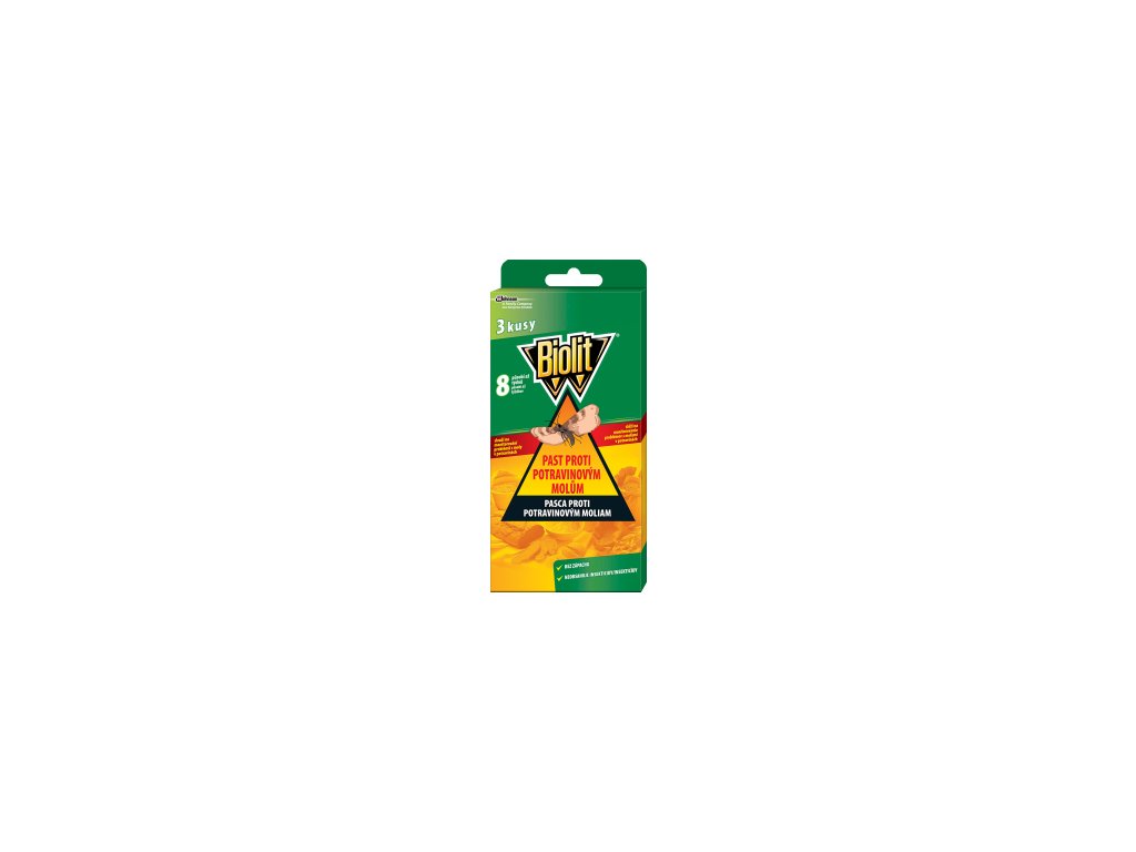 Biolit lapač potravinových molů účinně ochrání potraviny před čtyřmi nejčastějšími druhy potravinových molů. Obsahuje kombinaci vnitřního lepícího povrchu a vábící látky (feromonu), která spolehlivě láká samečky potravinových molů. Ti zůstávají přilepeni na lepivé ploše.