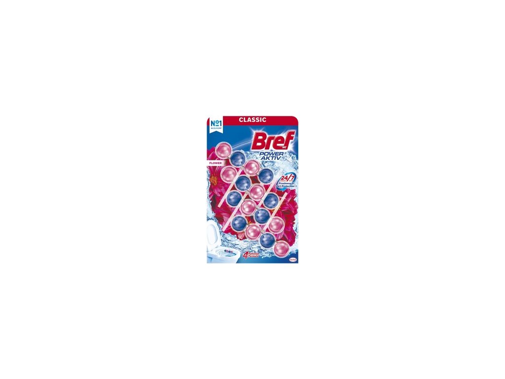 Bref Power Aktiv je účinný tuhý WC blok, který při každém spláchnutí zvládá 4 funkce - hygienickou čistotu, ochranu před vodním kamenem, dlouhotrvající svěžest a vytvoření bohaté čistící pěny pro bělost a lesk toalety. Bref Power Aktiv má navíc moderní a praktický tvar - košíček s kuličkami je dostatečně dlouhý a pokryje tak větší část WC mísy.?