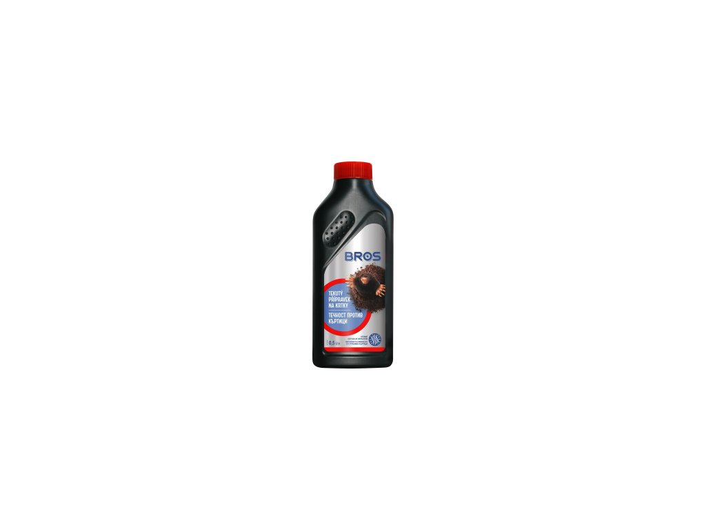 Bros Odpuzovač krtků je tekutý přípravek určený k ochraně zahrad a dětských hřišť, který účinně odpuzuje krtky zápachem. Aplikujeme 30 ml přípravku do každé aktivní chodby. Maximální účinnost po 1-2 dnech. Účinkuje po dobu 2 měsíců.