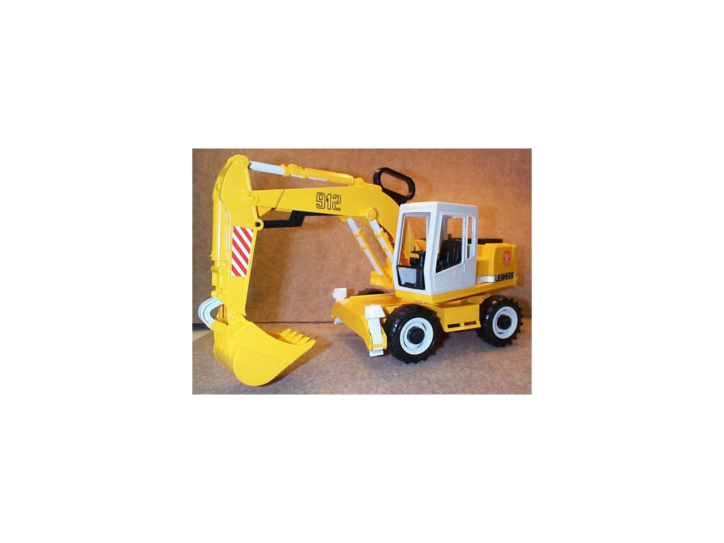 Bagr LIEBHERR je krásný model stroje s funkčním rýpadlem a stabilozátorem a otočnou základnou. Disponuje tvrdými pneumatikami.