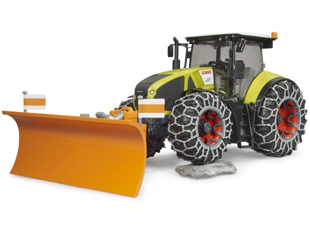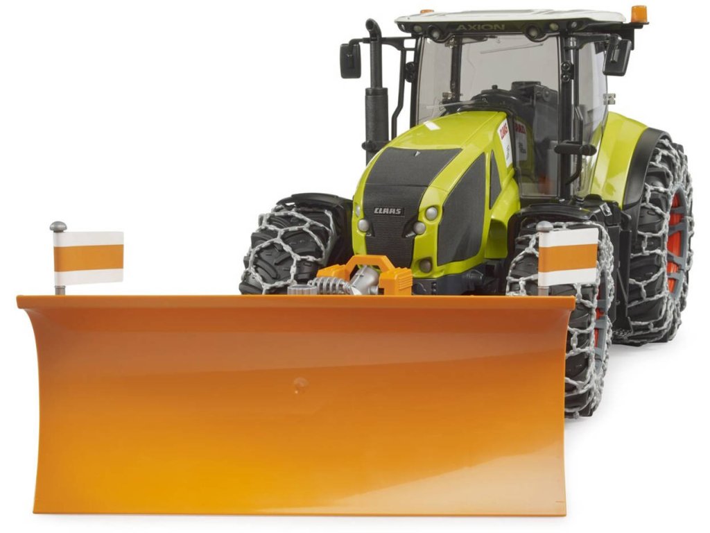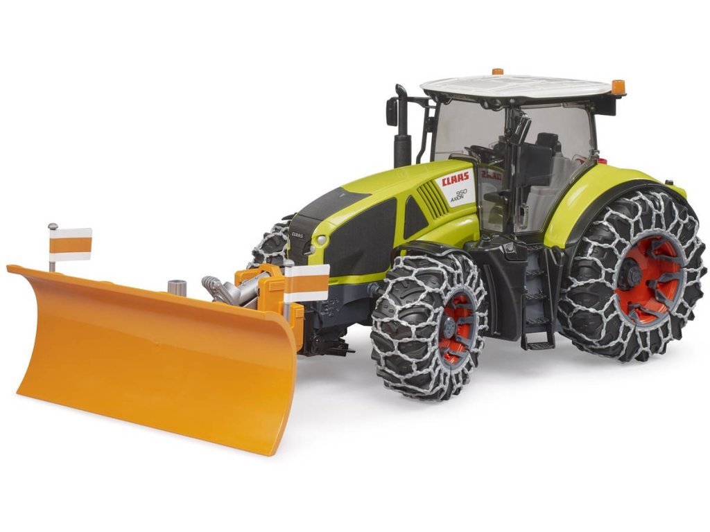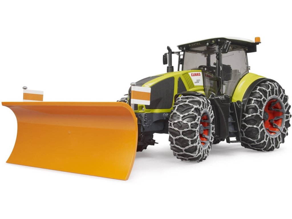 BRUDER 03018 Traktor Claas Axion 950 se sněhovými řetězy a radlicí
