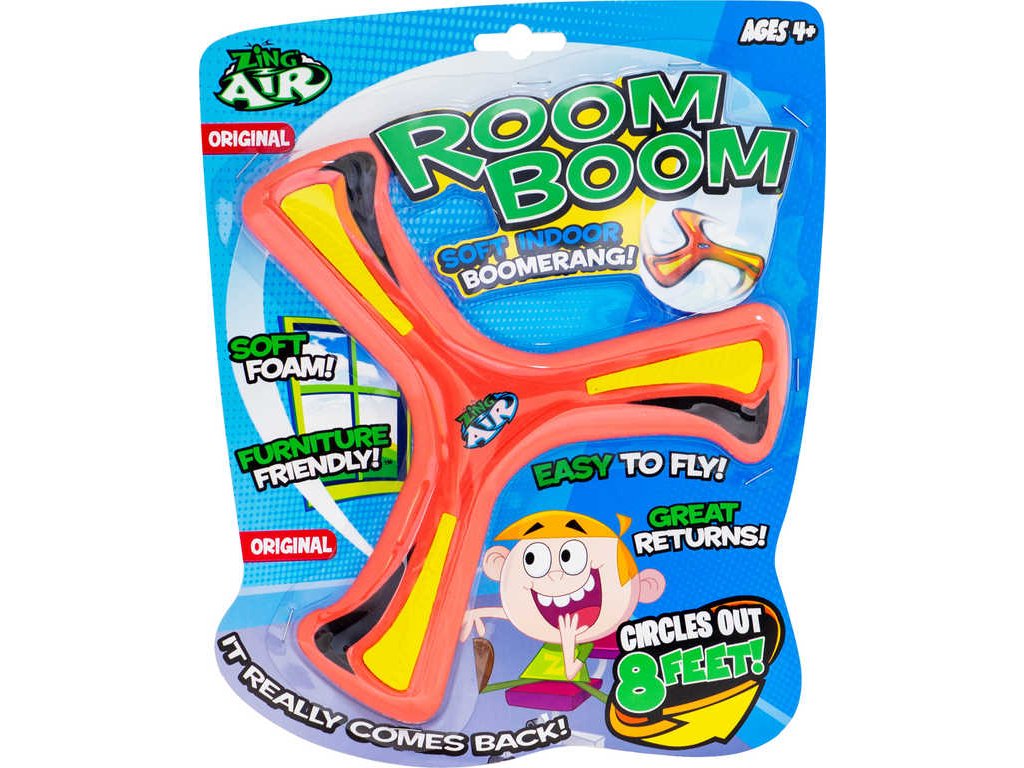 Room Boom - pěnová, odlehčená varianta klasického bumerangu, ve dvou barevných variantách. Tento lehký, trojramenný vracející se bumerang je vyroben z pěny, a je tak vhodný k bezpečné hře doma i venku.