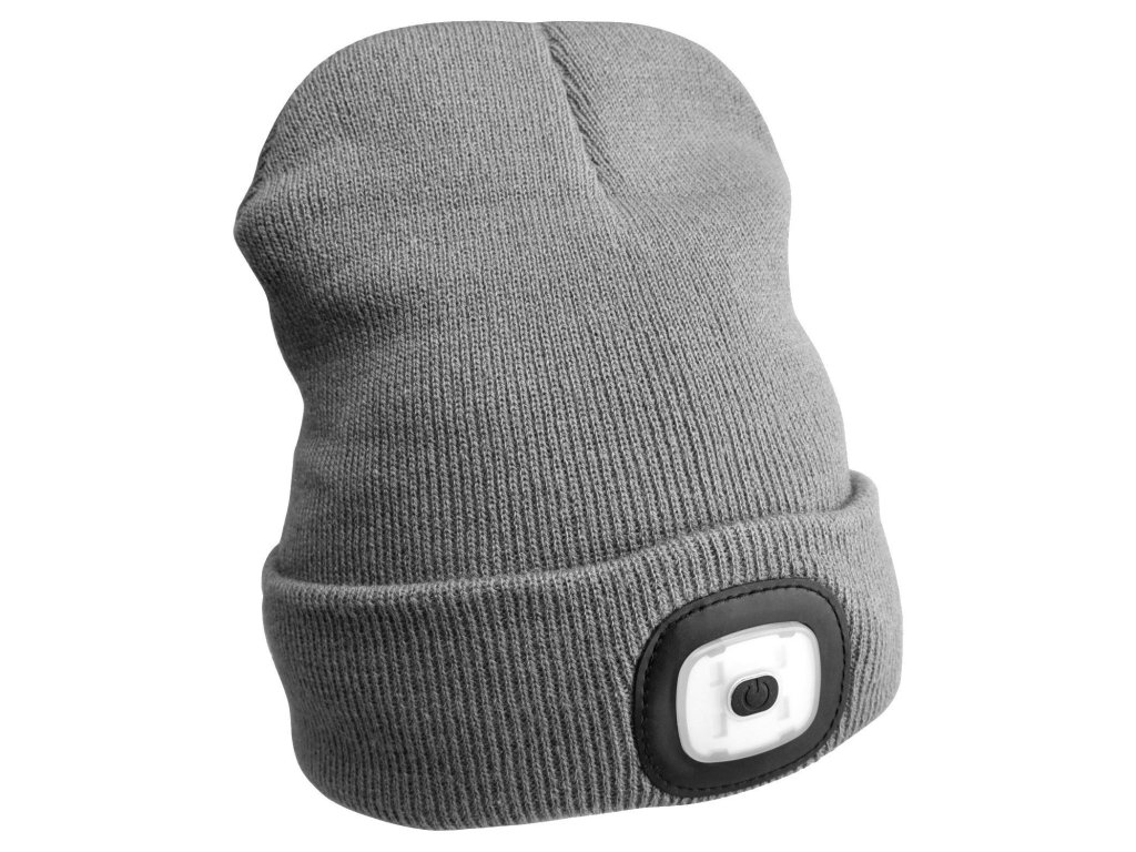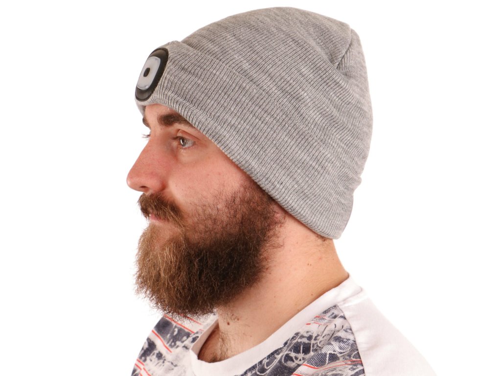 Čepice s čelovkou 180lm, nabíjecí, USB, univerzální velikost, bavlna/PE, světle šedá SIXTOL