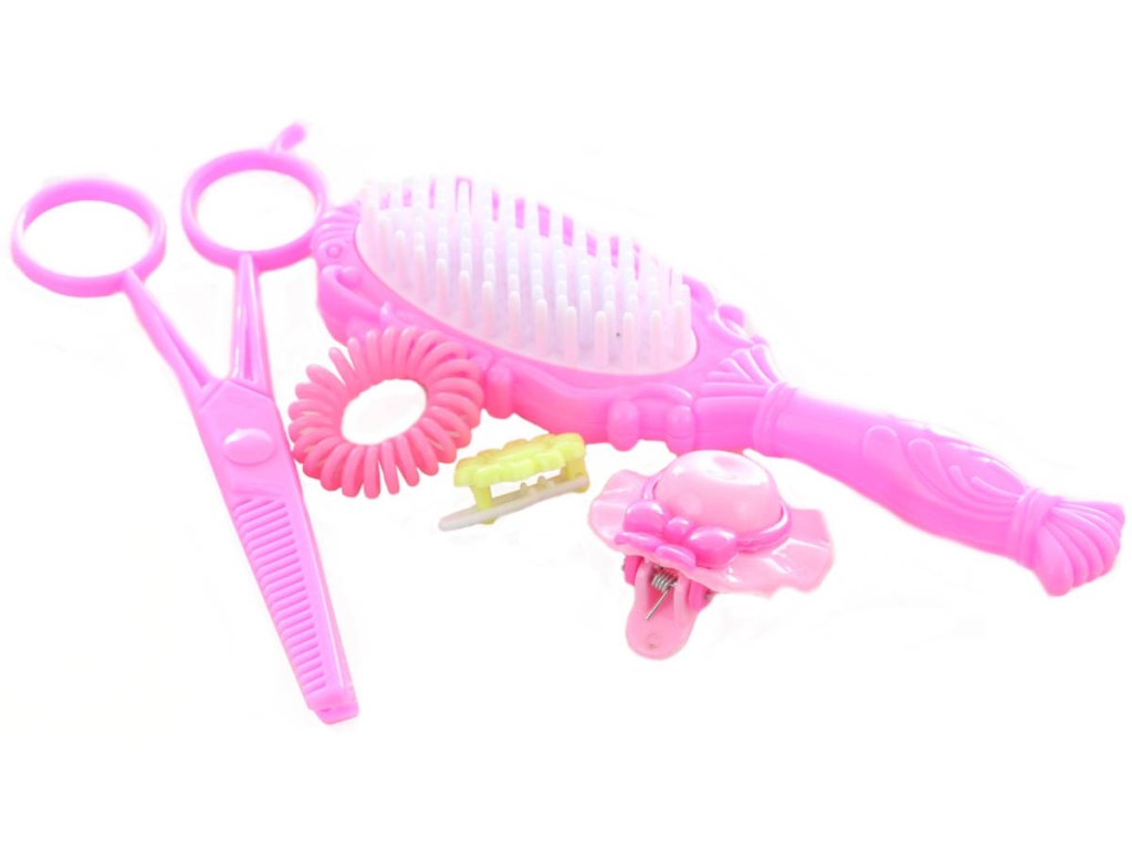 Obsah balení: česací hlava, gumičky, spirálky na vlasy, sponky, hřebínek, nůžky a další doplňky