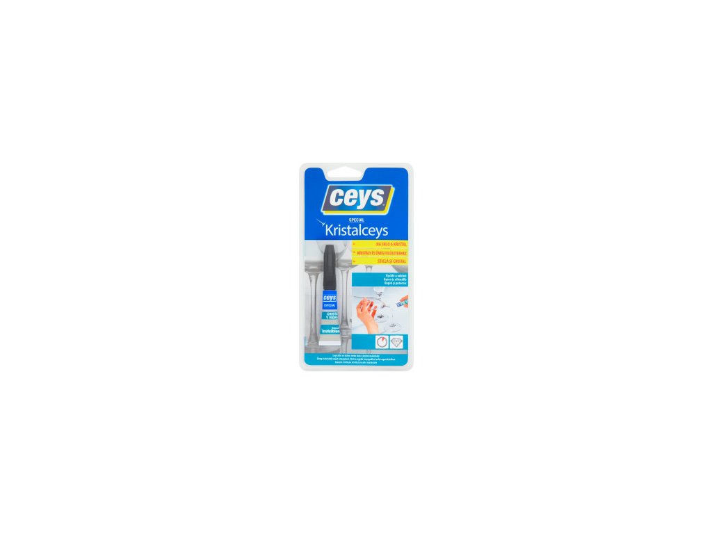 Kristalceys je rychlé lepidlo na lepení skla mezi sebou nebo s jinými pevnými materiály. Lepí velmi rychle a neviditelně pomocí slunečního záření (ultrafialového záření). Odolává vodě, čisticím prostředkům a teplotám až do 70 °C. Je vhodné pro lepení rovných ploch, nebo ploch, které do sebe perfektně zapadají.