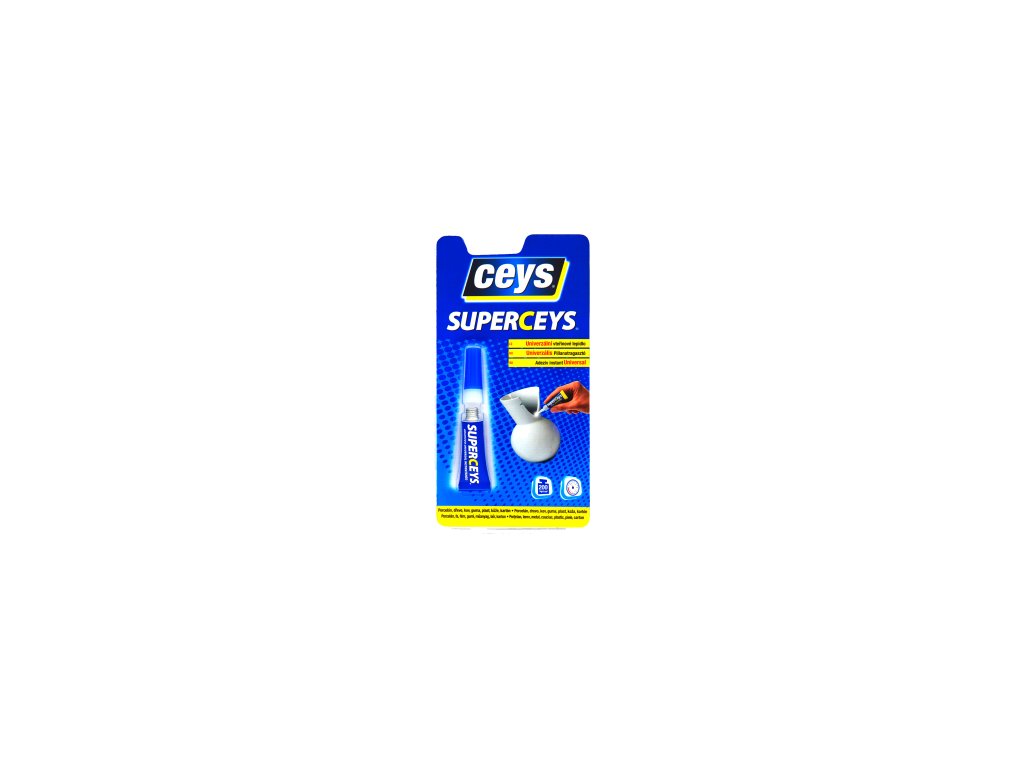 SuperCeys je vysoce odolné a snadno aplikovatelné univerzální transparentní vteřinové lepidlo. Na nejrůznější typy materiálů. Silné, rychlé a bezpečné. Vytvoří neviditelné spoje za pouhé 3 sekundy.