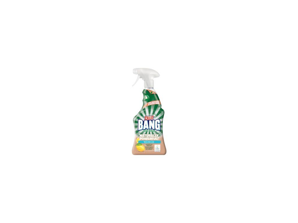 Chcete mít zářivě čistou koupelnu, ale snažíte se omezit čisticí prostředky plné chemie? Vyzkoušejte sprej do koupelny CILLIT BANG Odstraňovač vodního kamene, který obsahuje aktivní látky přírodního původu. Receptura s kyselinou citrónovou efektivně odstraňuje rez, vodní kámen, stopy po mýdle, špínu a usazeniny.