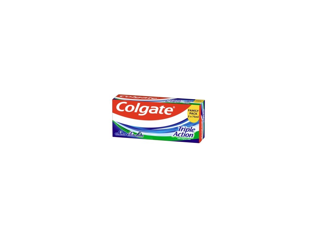 Zubní pasta Colgate Triple Action nabízí trojnásobný účinek pro odolnější a bělejší zuby s dlouhotrvající svěžestí dechu. Díky osvědčené receptuře s fluoridem pomáhá chránit zuby před zubním kazem, účinně redukuje povrchové zabarvení způsobené jídlem a nápoji a zajišťuje dlouhotrvající pocit čistoty. Díky příjemné mátové chuti zajistí svěží dech, který vydrží po celý den. Není vhodná pro děti do 7 let.