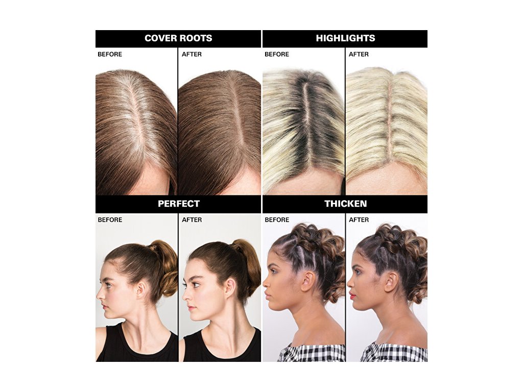 Pudr na vlasy Root Cover Up pro snadné a rychlé zakrytí odrostů. Hladce zakryje šediny a prodlouží melír bez použití peroxidu. Minerální složení odráží světlo pro dosažení přirozeného vzhledu. Nezpůsobuje ztvrdnutí nebo slepení vlasů. Jedno balení vystačí na 6 měsíců až 1 rok.