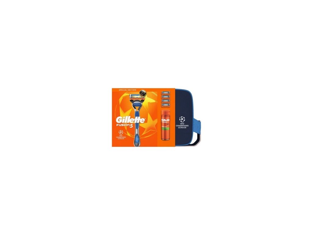 Dárková sada Gillette Fusion, strojek, 4 náhradní hlavice, holicí gel 200 ml
