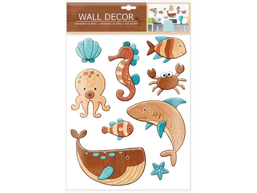 Dětské nástěnné dekorativní nálepky (samolepky) na zeď, motiv mořská zvířátka. Balení obsahuje 1 arch (9ks samolepek).