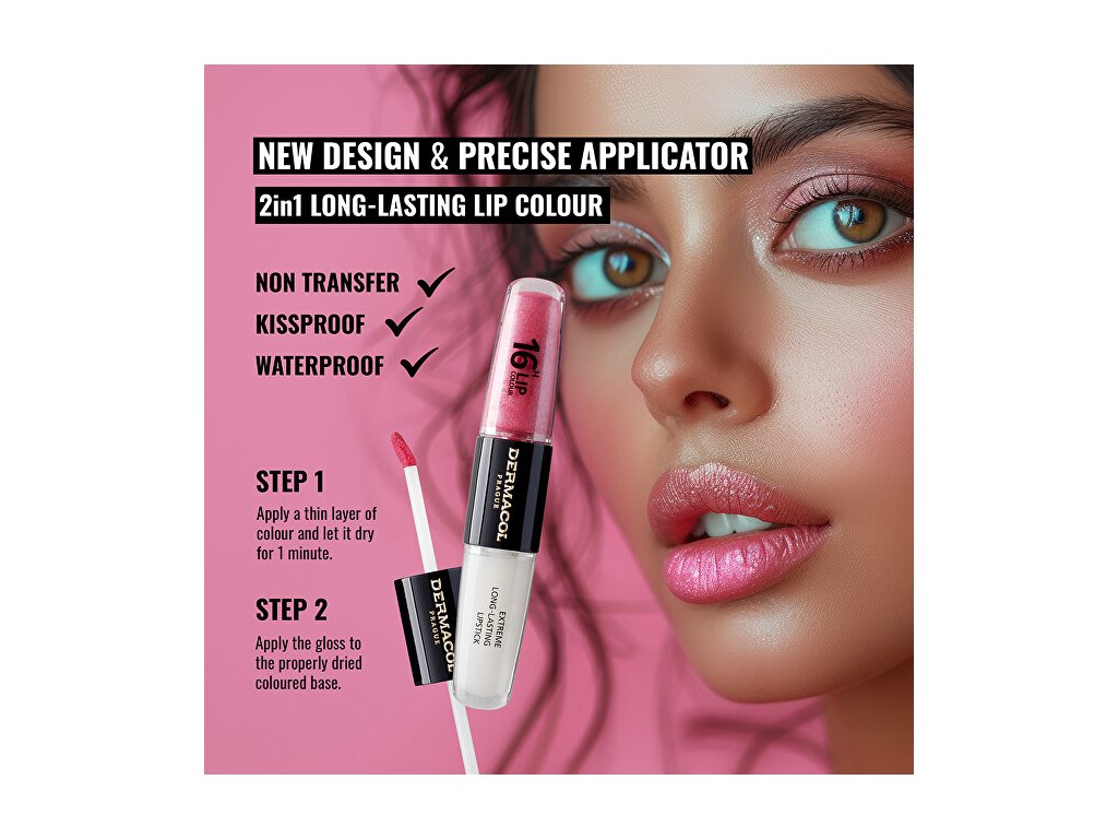 Dlouhotrvající dvoufázová barva na rty s obsahem vysoce kvalitních přírodních olejů a s vitamínem E zkrášlí rty dlouhotrvající intenzivní barvou po dobu až 16 hodin. Unikátní textura hydratuje rty, zabraňuje vysušování a dodá rtům svůdný lesk a plnost.