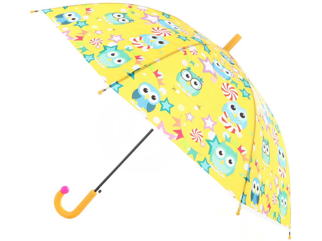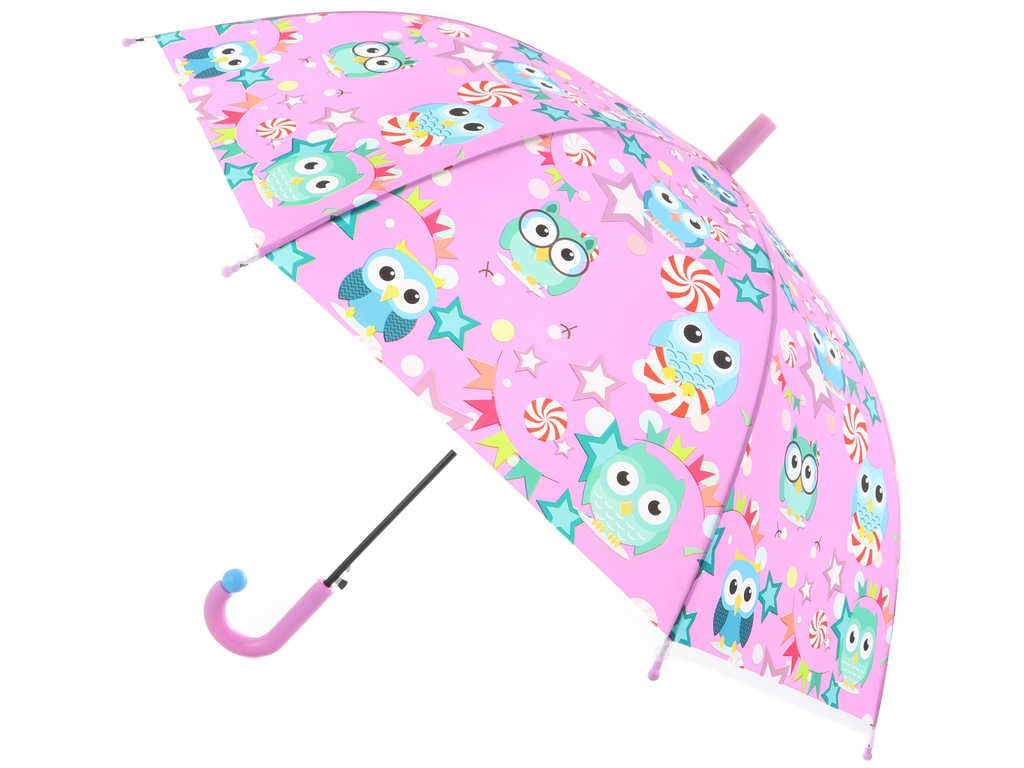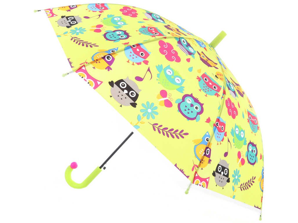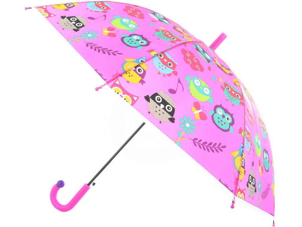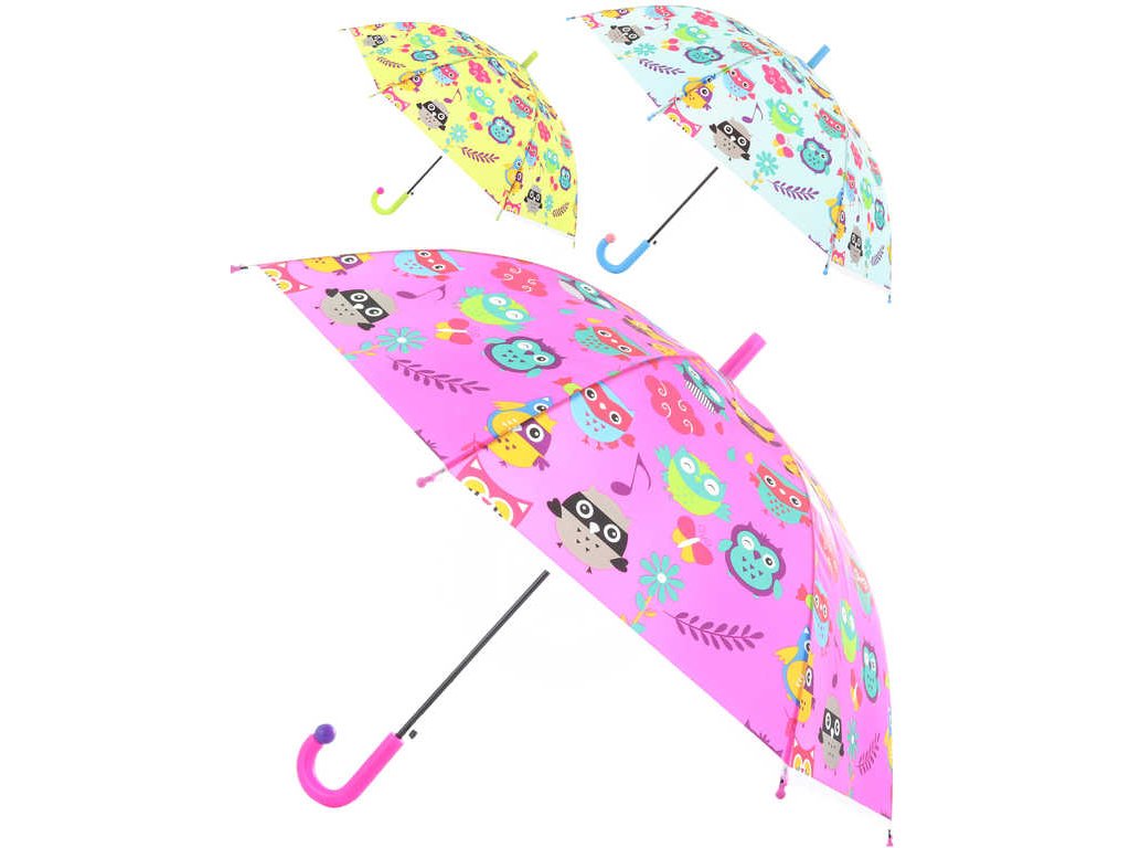 Pěkný, plastový deštníček pro děti, s vystřelovacím mechanismem, s veselým potiskem (sovičky), v několika variantách provedení. Baleno v igelitovém sáčku.