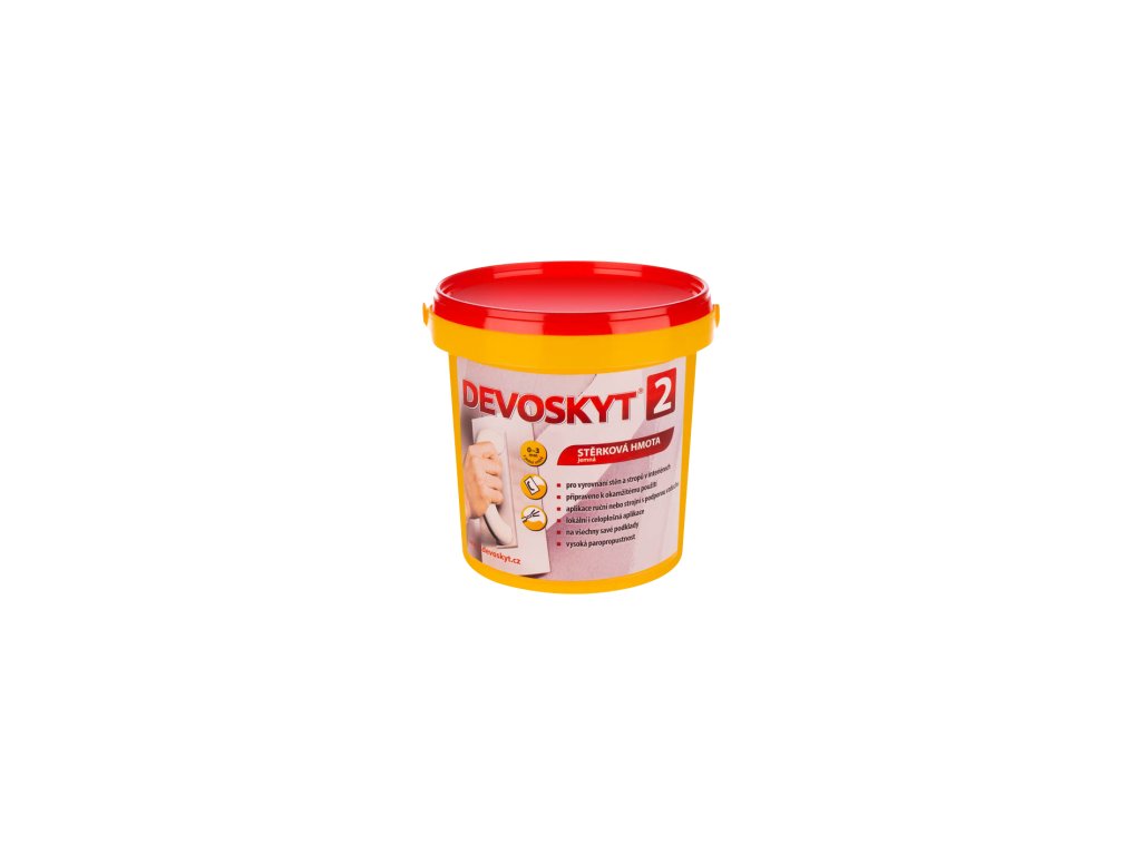 Devoskyt vnitřní stěrka je určen k povrchovým úpravám stěn a stropů v interiérech. Je připravena k okamžitému použití. Devoskyt je vynikající podklad pro malování, tapetování a veškeré dekorační techniky. Ve spojení s Mikrosem 3A (obdoba perlinky) snížíte spotřebu Devoskytu a značně omezíte možné mikrotrhliny. Vznikne tzv. „škrábatelný povrch“. Tento systém se s úspěchem využívá v zahraničí i na sádrokartonech.