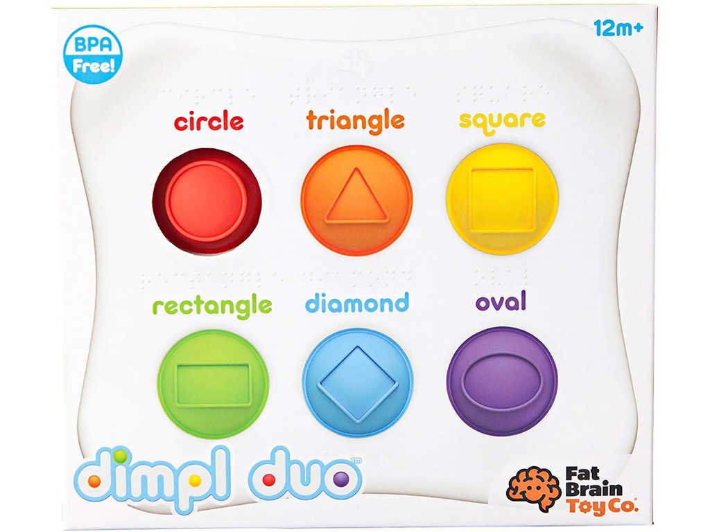 Výrazné barvy, zajímavé materiály a zvuky. To vše děti zaujme a to vše také objeví v interaktivní hračce Dimpl Duo značky Fat Brain. Jedná se o bílou destičku zaoblených tvarů, která dokonale padne do malých