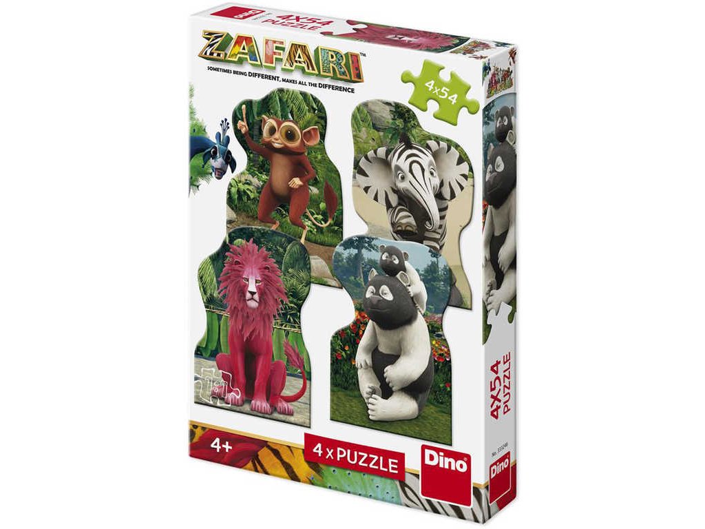 DINO Puzzle 4x54 dílků Zafari: Zoomba a kamarádi 13x19cm skládačka 4v1