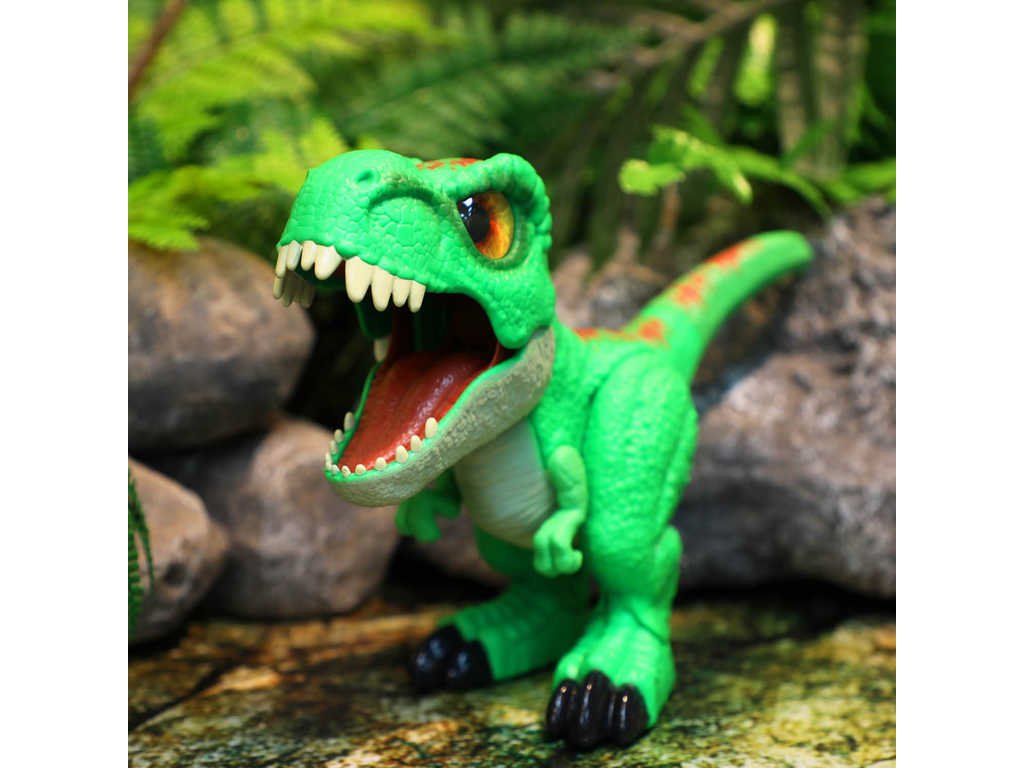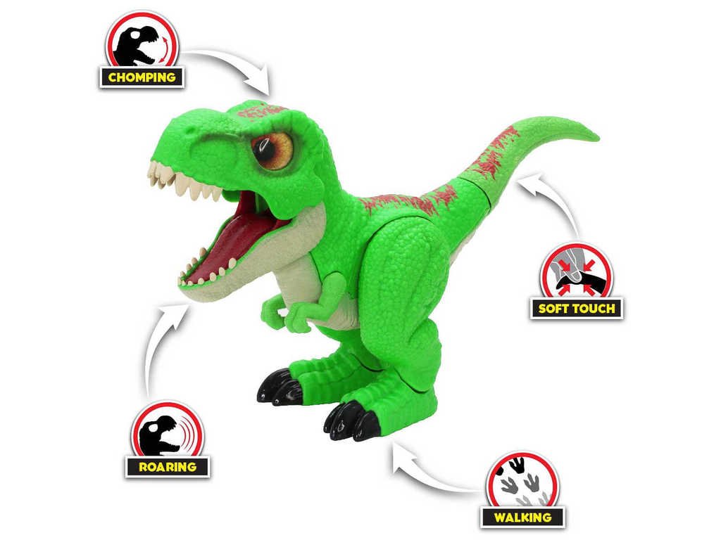 Tento interaktivní Tyrannosaurus T-Rex mládě řve a chodí jako opravdový dinosaurus. Dokáže hýbat pusou a má měkký gumový ocas. Pohyblivá tlama, hlava i ocas, vydává zvuk, umí chodit. Parádní hračka pro