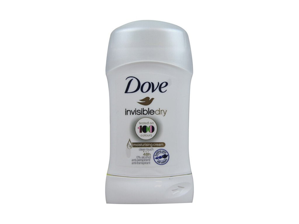 Tuhý deodorant Invisible Dry od značky Dove vám přináší až 48hodinovou ochranu proti potu a nepříjemnému pachu. Má navíc speciální složení, které pomáhá chránit proti skvrnám na barevném oblečení. Obsahuje 1/4 hydratačního krému, díky němuž bude vaše pokožka v podpaží hebká a jemná.