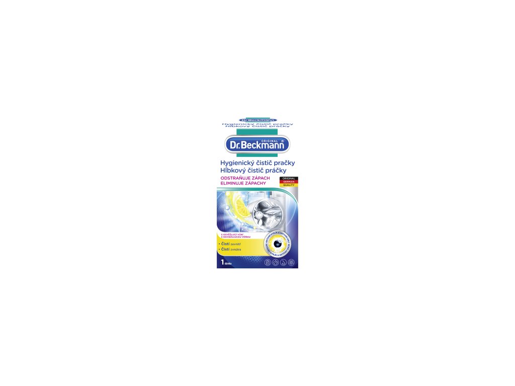 Dr. Beckmann Čistič pračky odstraňuje pachy, hygienicky čistí interiér pračky jako je: buben, topná spirála, hadice a další obtížně přístupné komponenty. Práškový přípravek čistí do hloubky a odstraňuje pachy.