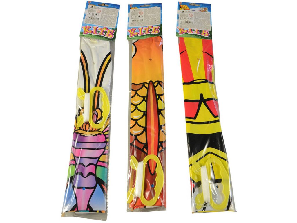 Lehký plastový drak v pěti pestrobarevných motivech.