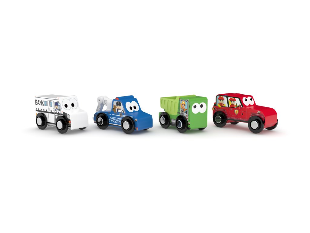 Hračka z přírodního dřeva. Stimulujte dětskou představivost, povzbuzuje roleplay a vyprávění příběhů. Tato sada přírodních dřevěných hraček obsahuje 4 vozidla. Výrobek pomáhá rozvíjet jemné motorické dovednosti a koordinaci ruka-oko při uchopení, držení a rolování auta tam a zpět.